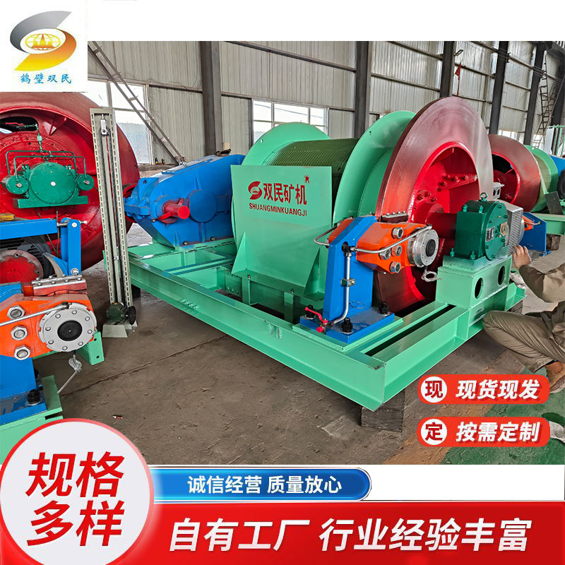它主要用于礦井中升降人員、提升煤炭、矸石、物料等。其工作原理通常是通過電動機帶動卷筒旋轉,卷筒上纏繞的鋼絲繩實現(xiàn)重物的升降。